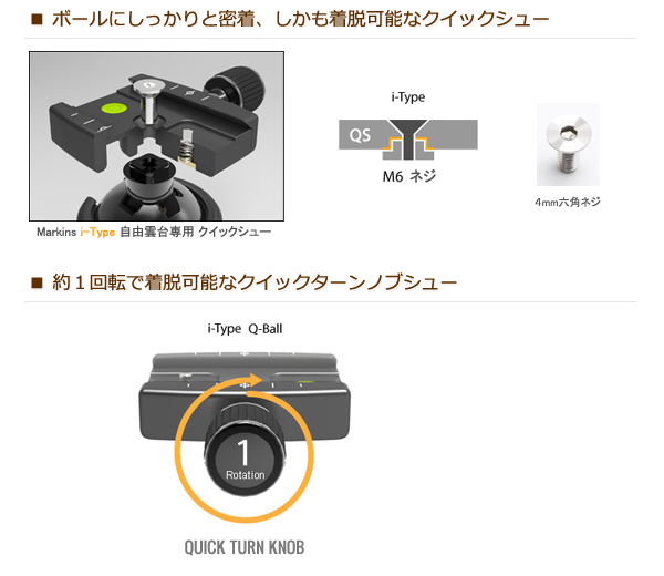 マーキンス(Markins) Q3i-BL は、小型・軽量モデルとしておすすめのQ3i シリーズ ノブタイプ(クイックターン) ブルー(BL) 自由雲台です。