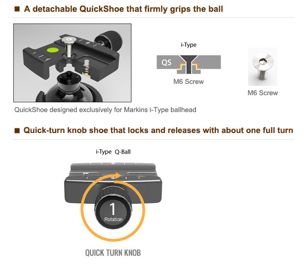 The Markins Q3i is a ball head from the Q3i Series, recommended as a compact and lightweight model.