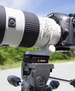 クイックターンノブシューは約1回転でプレートの着脱が可能ですので、機材の素早い設定が可能で、同じダブテールスタイルのプレートであれば他社プレートも調節なしで装着できます。