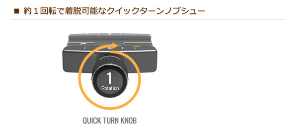 クイックターンノブシューは約1回転でプレートの着脱が可能ですので、機材の素早い設定が可能で、同じダブテールスタイルのプレートであれば他社プレートも調節なしで装着できます。