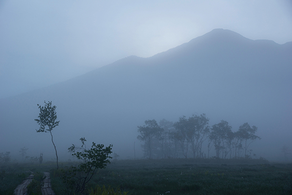 朝霧が突然晴れ始め、尾瀬ヶ原の風景が目の前に広がり始めました。クイックシューを装備し、素早く着脱できるマーキンスの自由雲台だからこそ、撮影に間に合ったと言えるでしょう。